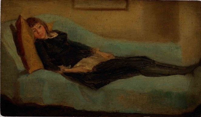 Girl resting on a sofa, by Beatrice Whistler, oil, date unknown (© The Hunterian Museum and Art Gallery, University of Glasgow 2017)