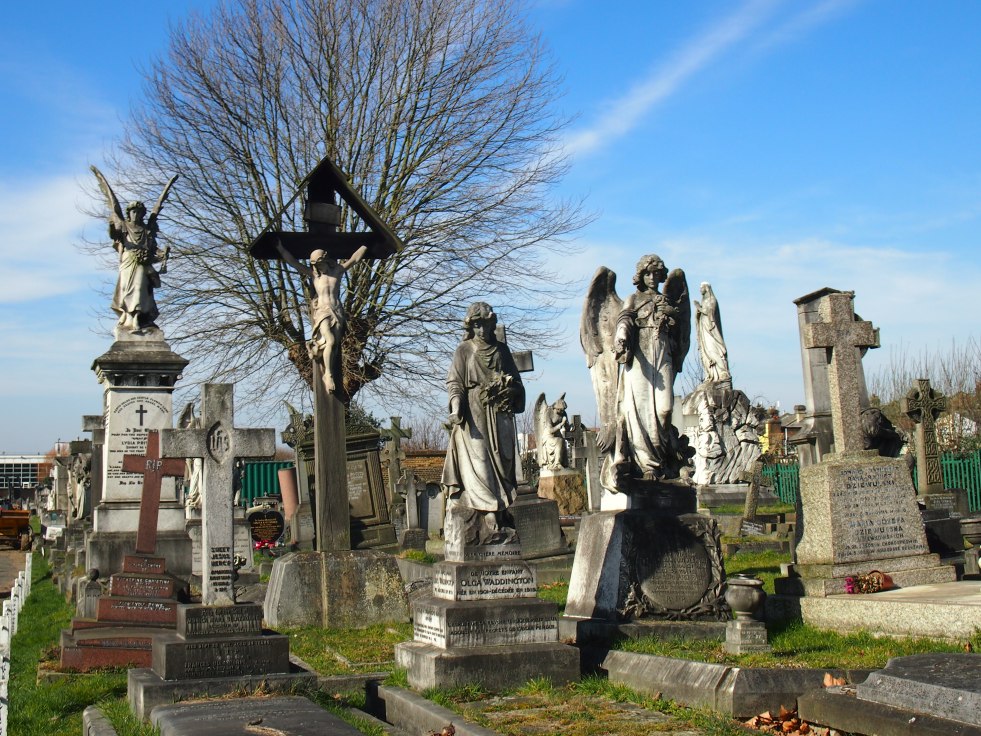 Next door to the well-known Kensal Green, one of London’s “Magnificent Seven” cemeteries, is another vast necropolis. The two cemeteries are separated only by a tall brick wall, and although they are similar in age, and include many similar memorials, there are differences between the two cemeteries – some subtle, others less so. St Mary’s Cemetery at Kensal Green is one of only two burial grounds in London that caters exclusively for Roman Catholics, and around the cemetery the visitor can see many symbols that reflect the faith of those buried there.